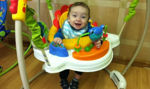 • Provide developmentally appropriate toys such as rattles, busy boxes and balls to develop infants large and small muscles.